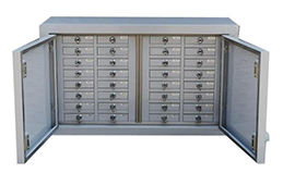该产品采用严密的结构设计,内部采用电镀处理,表面静电喷塑,具高耐磨性及防腐性,防辐射性能强,屏蔽效能好,可有效抑制移动电话信号的泄漏,并可同时存放多部移动电话,每个抽屉采用安全式信箱锁,独立式管理。适应于党政机关,军队,会议室,考试场所等涉密场所的移动电话集中管理,不受用电环境的影响。